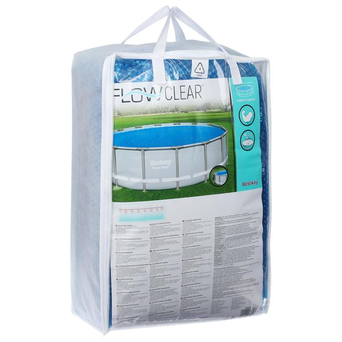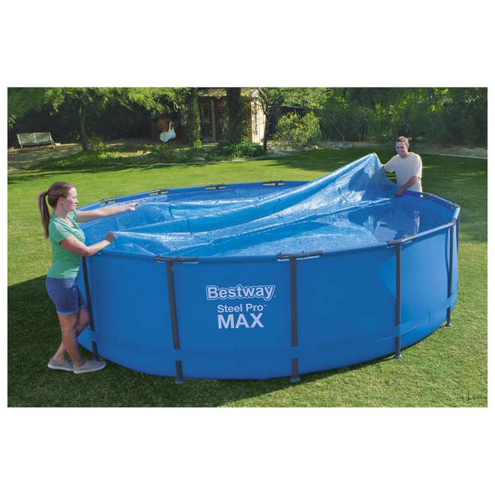 Солнечное покрывало Bestway предназначено для круглых бассейнов диаметром 457 и 488 см. Используется для сохранения тепла воды, защиты от загрязнений и уменьшения испарения.