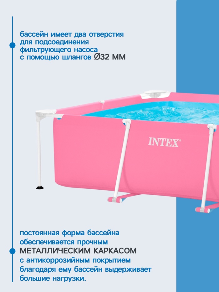 Бассейн каркасный Pink Frame Pool, 220×150×60 см, розовый, круглый, 28266NP INTEX
