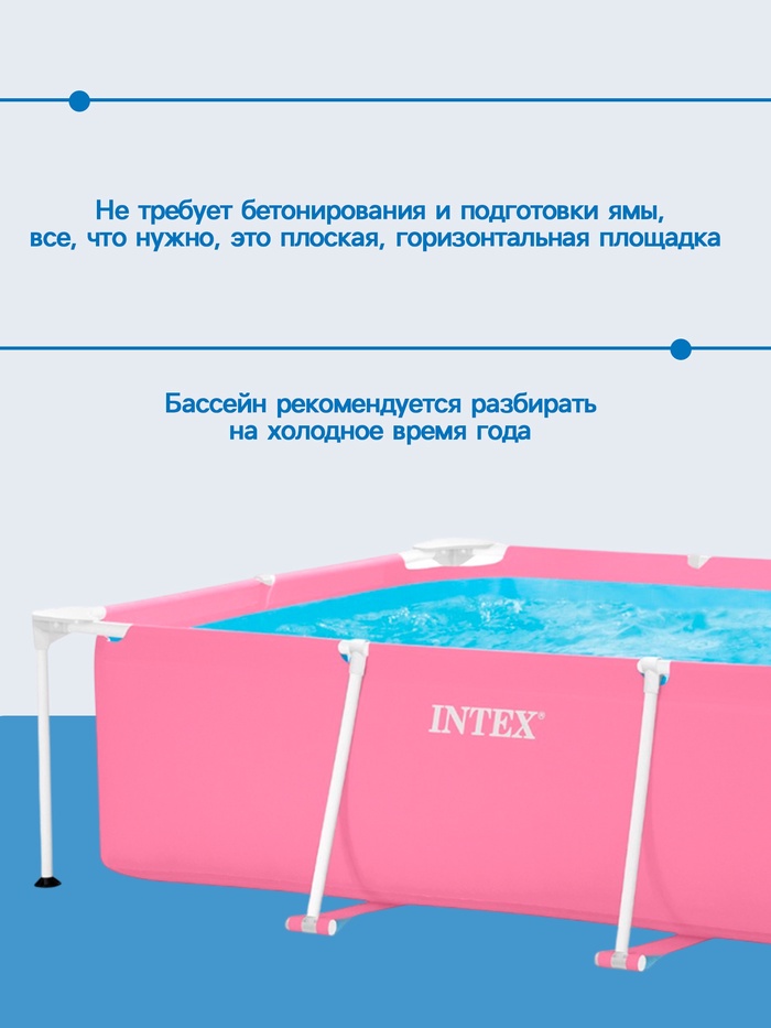 Каркасный бассейн Pink Frame Pool подойдёт для размещения на придомовом участке. Для установки потребуется только ровная площадка, очищенная от острых предметов.