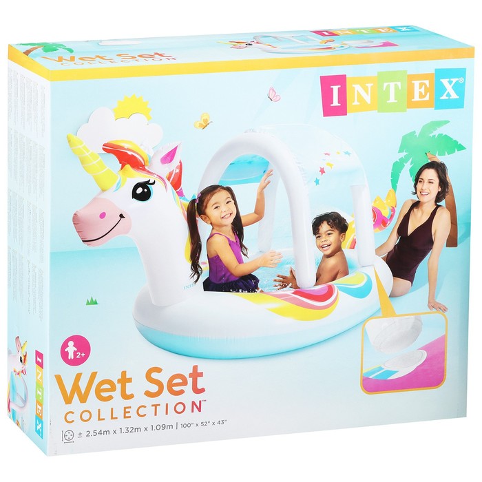 Бассейн надувной «Единорожка» 254×132×109 см с навесом, 58435NP INTEX