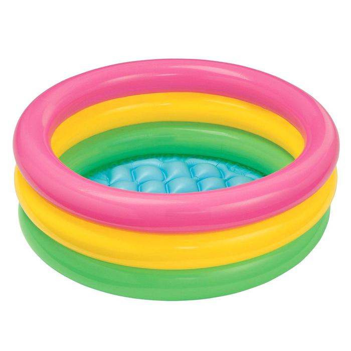 Яркий и прочный бассейн с надувным дном — это не только радостные эмоции ребёнка, но и украшение загородного участка. Приятный дизайн в виде красочных надувных колец и рифлёного надувного дна не оставит равнодушными даже взрослых. С этим бассейном малыш сможет разучить новые игры, освежиться в летний зной и избавиться от боязни воды. Не беспокойтесь о безопасности малыша: мягкие бортики уберегут ребёнка от травм.