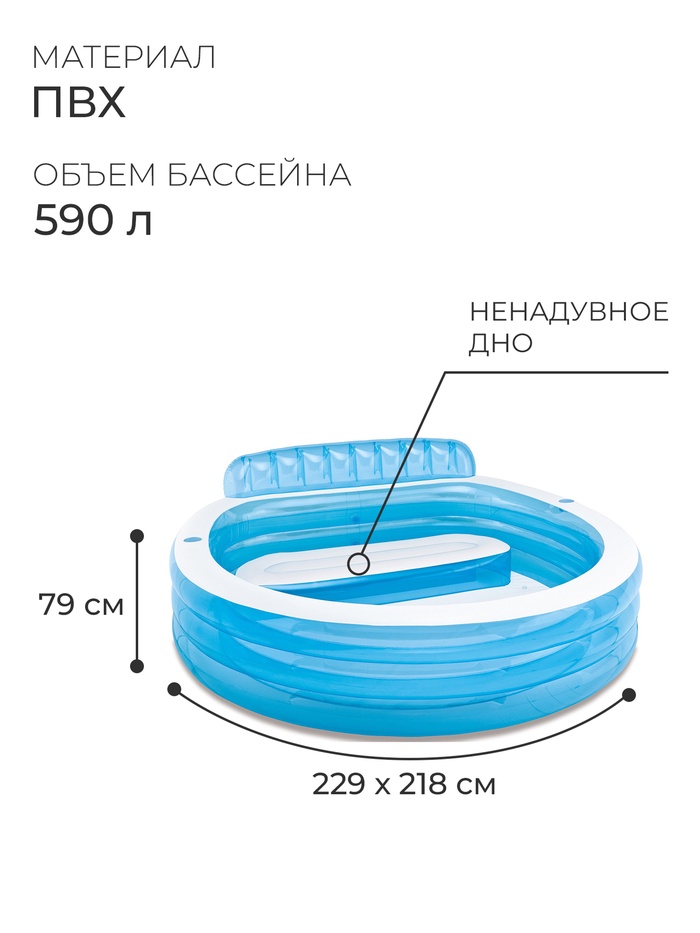 Бассейн надувной с подголовником 229×218×79 см, от 6 лет, 57190NP