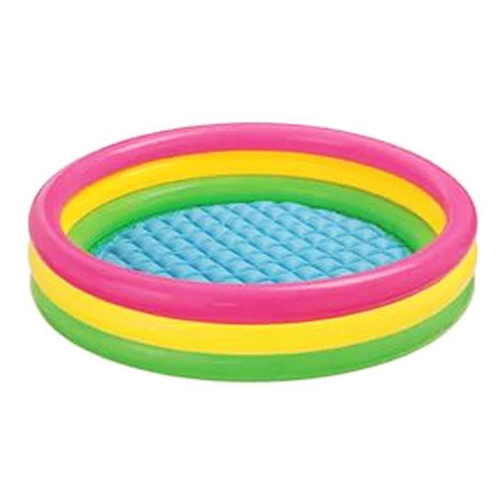 Надувной бассейн позволит вашему ребёнку прекрасно провести время в летнюю жаркую погоду. У бассейна, красивая радужная окраска. Мягкие надувные бортики способствуют уюту и комфорту.