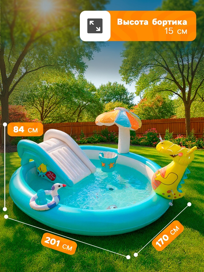 УЦЕНКА Игровой центр «Крокодильчик», 201×170×84 см, с горкой и игрушками, от 2 лет, 57165NP INTEX