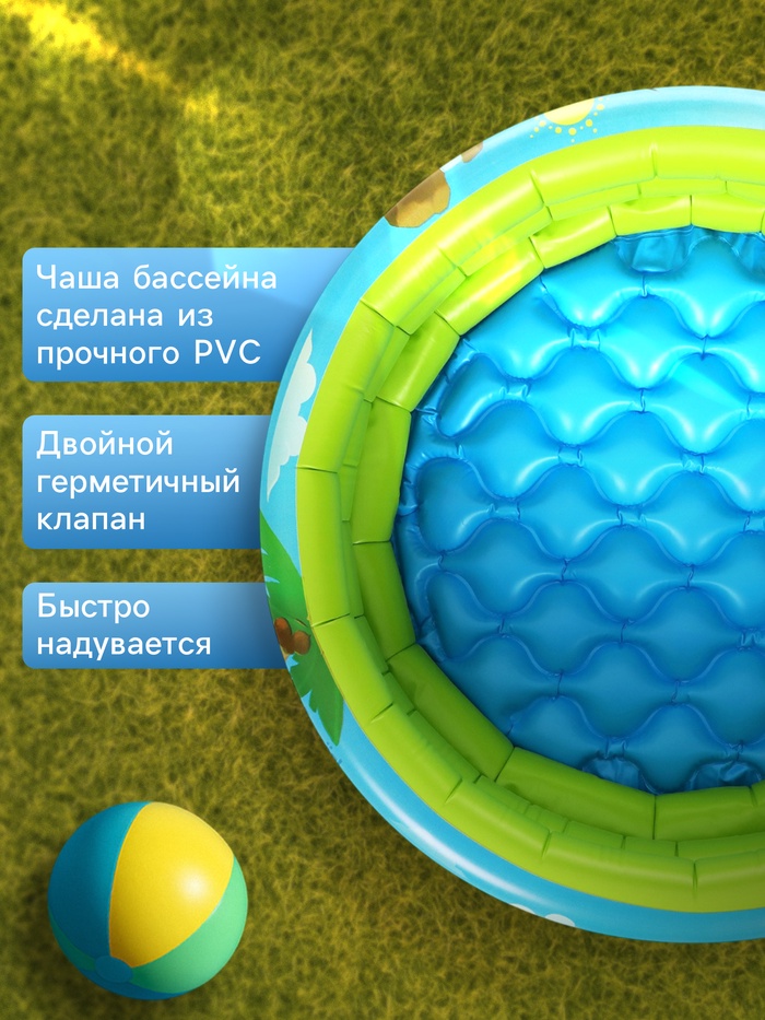 Надувной бассейн предназначен для активного отдыха и летнего досуга. Яркий дизайн не оставит ребёнка равнодушным. Бассейн можно установить на дачном участке или во дворе загородного дома.
