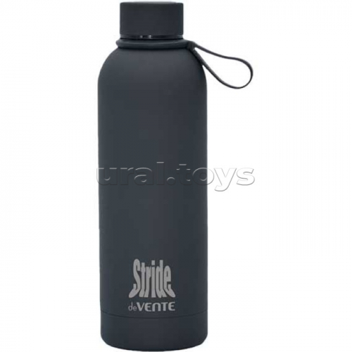 Бутылка-термос "Stride Midnight Black" 500 мл, 22x7,2 см, 8-12 часов, нержавеющая сталь, с силиконовой ручкой, герметичная крышка, софт-тач покрытие, матовая, черная