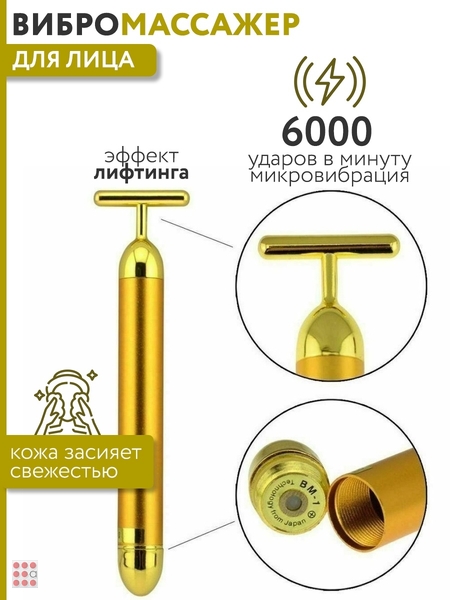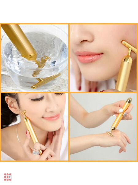 Вибрирующий массажер хранит в своем арсенале акупунктурный Т-образный наконечник с настоящим золотом. За одну минуту осуществляется 6 тысяч микровибраций. Микрочастицы золота проникают глубоко под кожу. Принцип действия похож на невероятно дорогую процедуру золотого армирования кожи. Разница лишь в том, что с ионным вибромассажером вам не нужна операция или много денег.