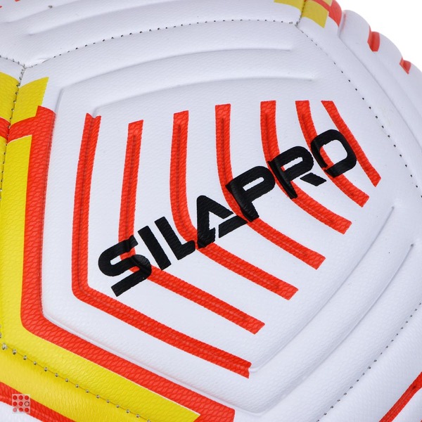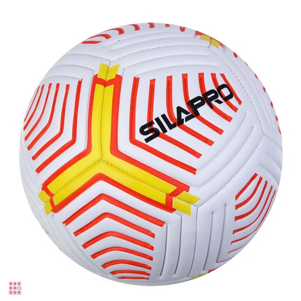 Мяч футбольный SILAPRO размером 22 см и пятого размера — это качественный спортивный инвентарь для любительских игр и тренировок. Он выполнен из трёхслойного полиуретана толщиной 3,5 мм, что делает его устойчивым к проколам и истиранию. Вес мяча составляет 400 г ± 10%. Благодаря упругости материала верха мяч обеспечивает хороший отскок, что облегчает выполнение точных передач. Камера мяча хорошо держит воздух, поэтому мяч не требует частой подкачки.
