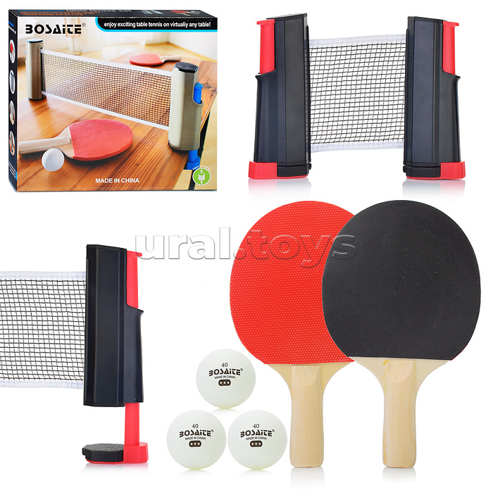 Набор для настольного тенниса (сетка, 2 ракетки, 3 шарика) в коробке
