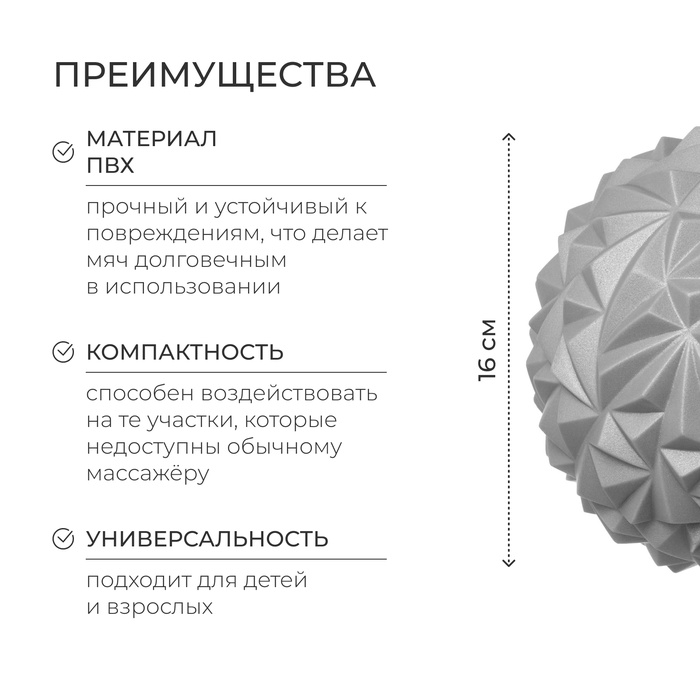 Массажный мяч ONLYTOP «Полусфера», d=16 см, серый