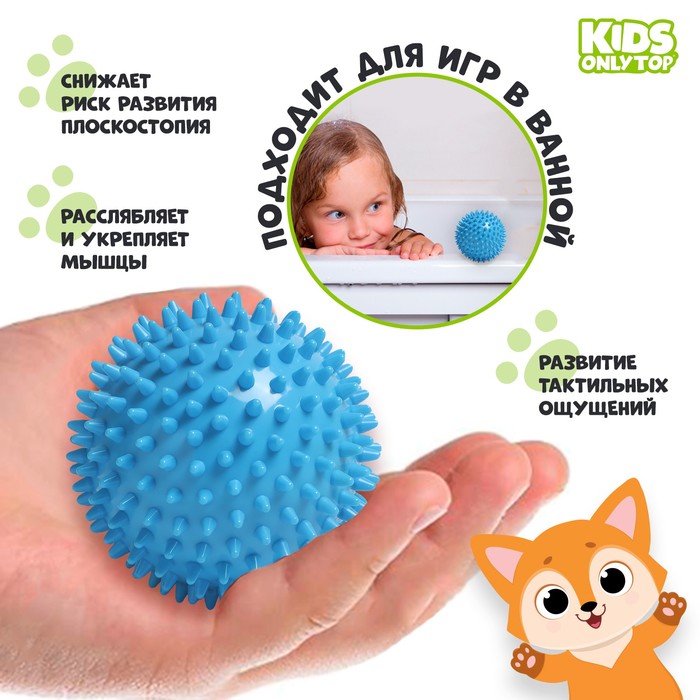 Мяч массажный ONLYTOP «Ёжик», d=9 см, голубой