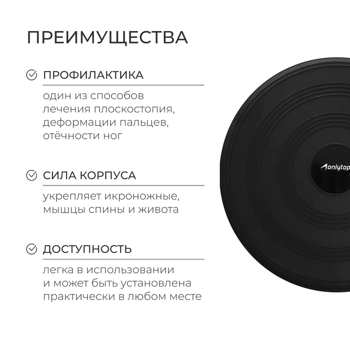 Подушка балансировочная ONLYTOP, массажная, d=32 см, цвет чёрный