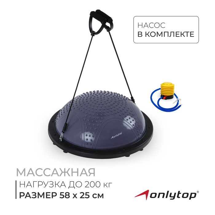 Полусфера BOSU гимнастическая ONLYTOP, массажная, с насосом, 58×25 см, серая