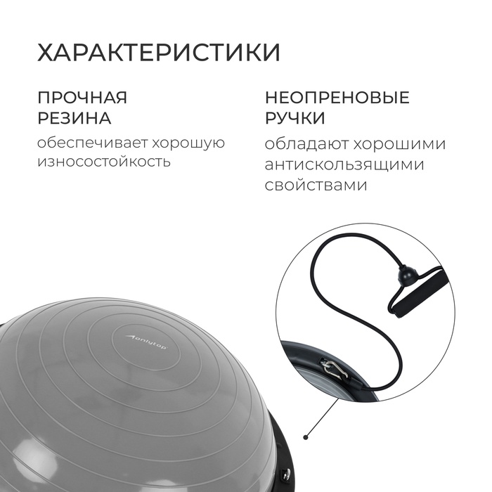 Полусфера BOSU гимнастическая ONLYTOP, с насосом, 58×25 см, серая