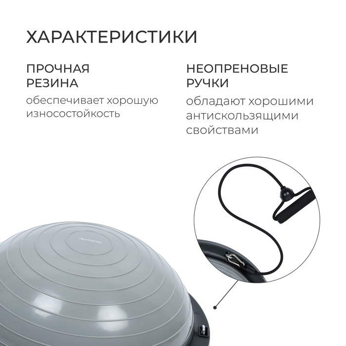УЦЕНКА Полусфера BOSU гимнастическая 46×20 см, с насосом, серая