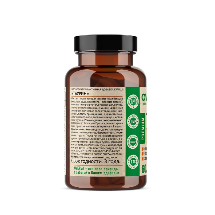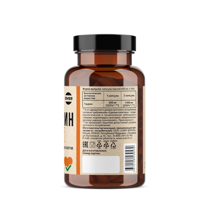 2 капсулы (суточная дозировка) содержат: таурин -1000 мг.