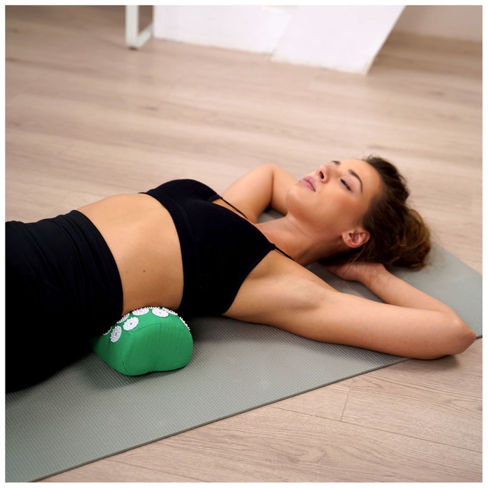 Набор предназначен для йоги и занятий фитнесом. Благодаря иголочкам, которые расположены по кругу пластиковых частей аппликаторов, можно проводить расслабляющий массаж. Валик под шею или поясницу поможет расслабить мышцы.