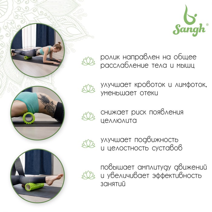 Ролик массажный Sangh, 30×10 см, цвет зелёный