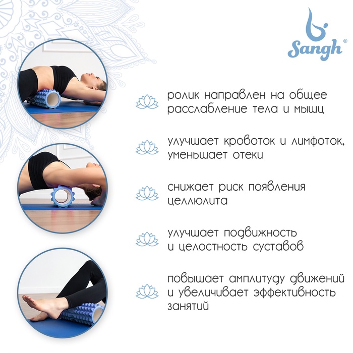 Ролик массажный Sangh, 33×13 см, цвет синий