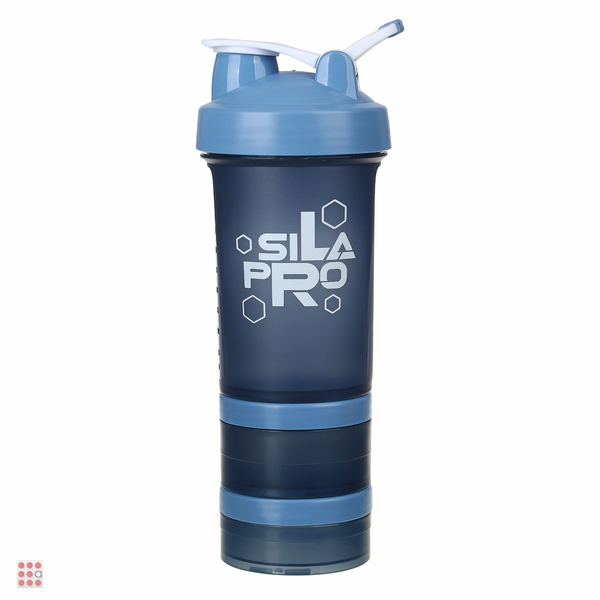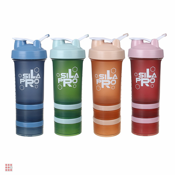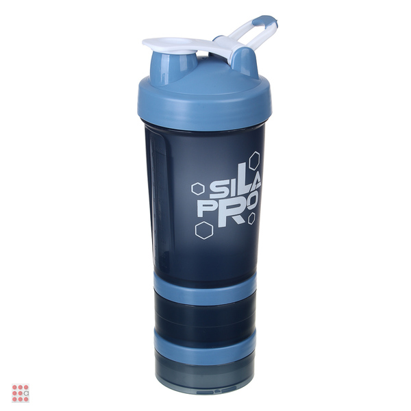 Спортивный шейкер 3 в 1 SILAPRO 500 мл с двумя контейнерами и металлическим взбивателем прекрасно подходит как для воды, так и для приготовления спортивных напитков: протеиновых коктейлей, белково-углеводных смесей, изотонических растворов. В нужный момент просто откройте контейнер со смесью в порошке и смешайте его с водой в шейкере. Таким образом, вы получите свежий коктейль без комочков в тот момент, когда это необходимо. Контейнеры с крышками надежно фиксируются в нижней части бутылки, образуя единую конструкцию. Поильник с надежным клапаном удобен для питья. 4 цвета в ассортименте.