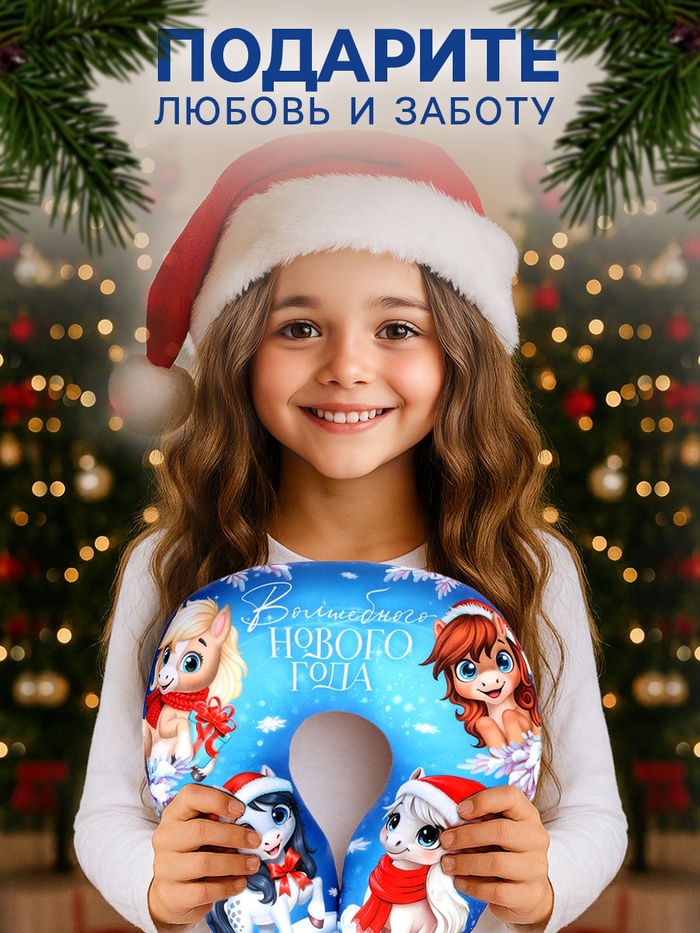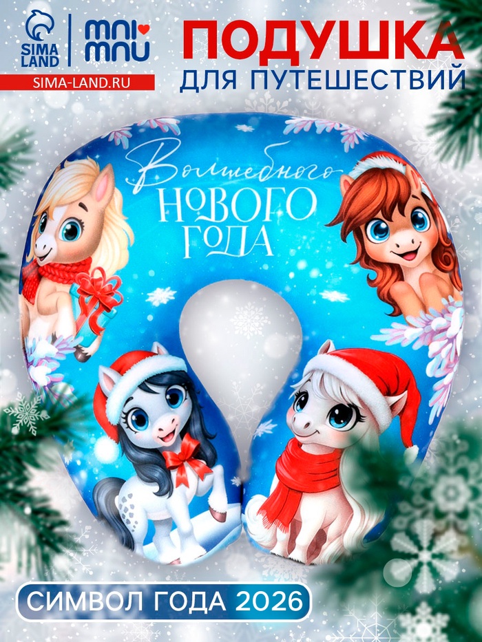 Подушка для путешествий антистресс «Волшебного Нового года. Лошадь», синий