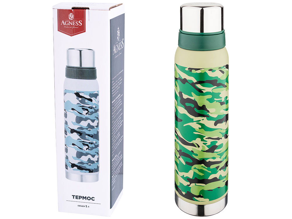 Термос 1л с узким горлом и 2-мя крышками-чашками, колба нерж