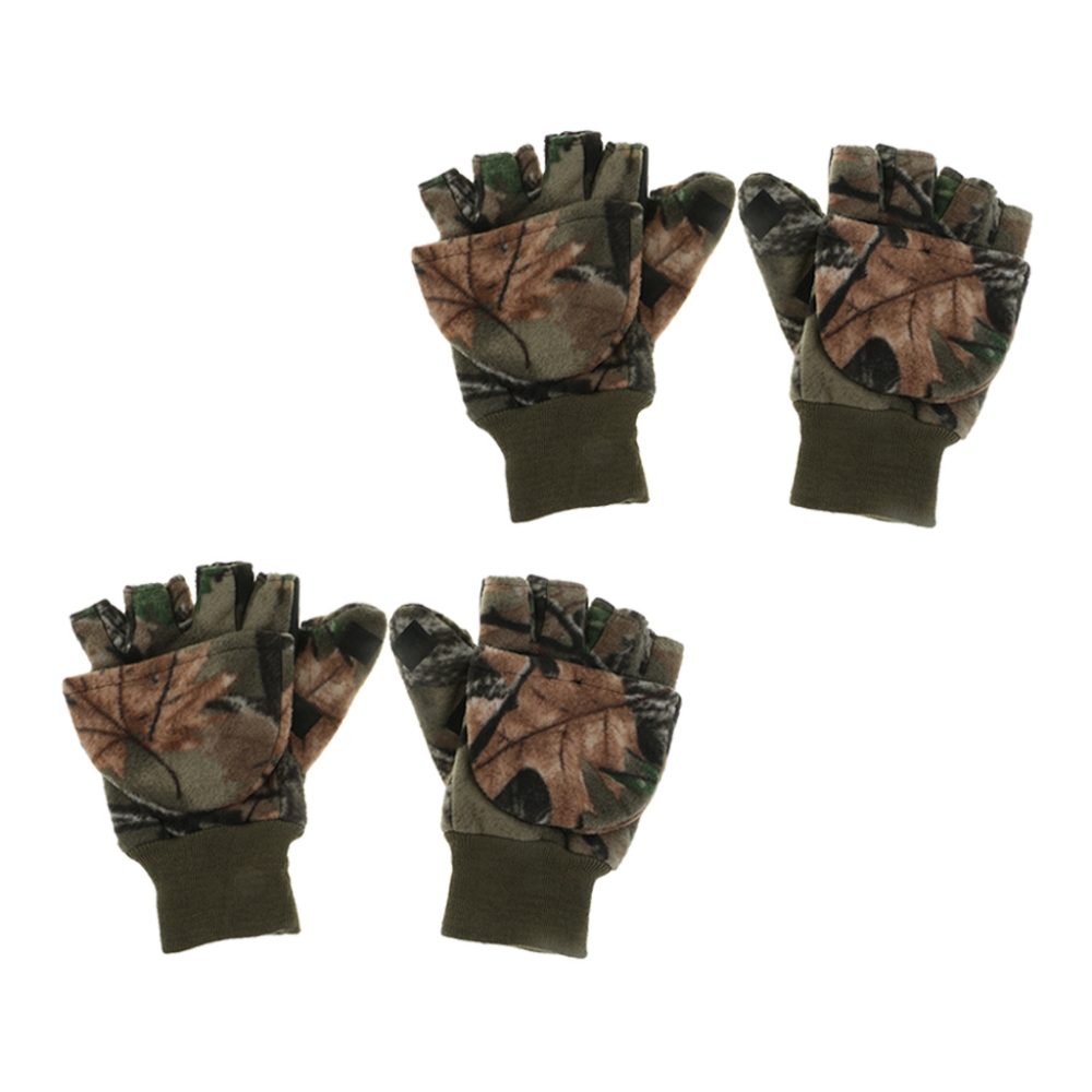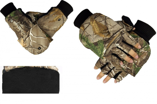 Перчатки - варежки с клапаном на липучке, ткань двойной флис, ладонь иск. кожа, цв. лес (6-005)