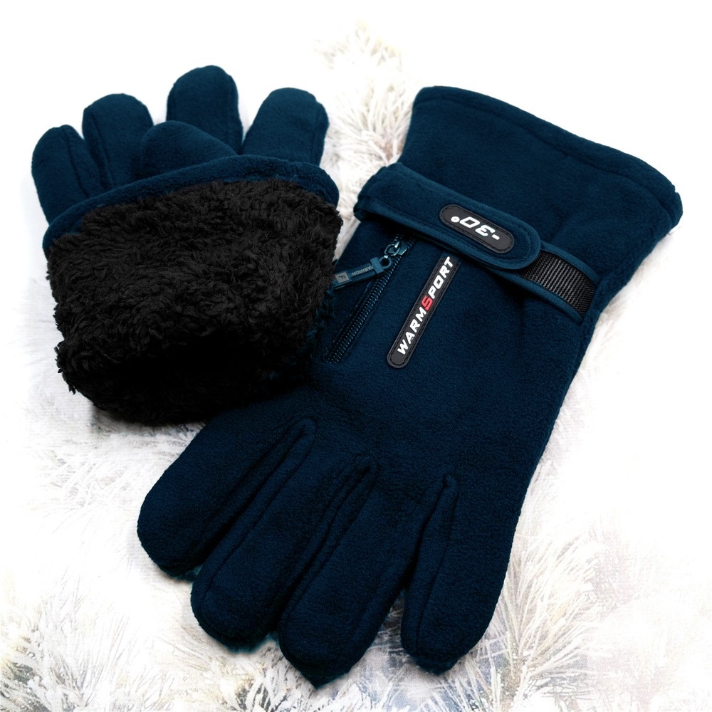 Перчатки WARM SPORT, флисовые, подкл.иск.мех,карм.на молнии,фикс.на запястье, -30,цв.тем.син (4-001)