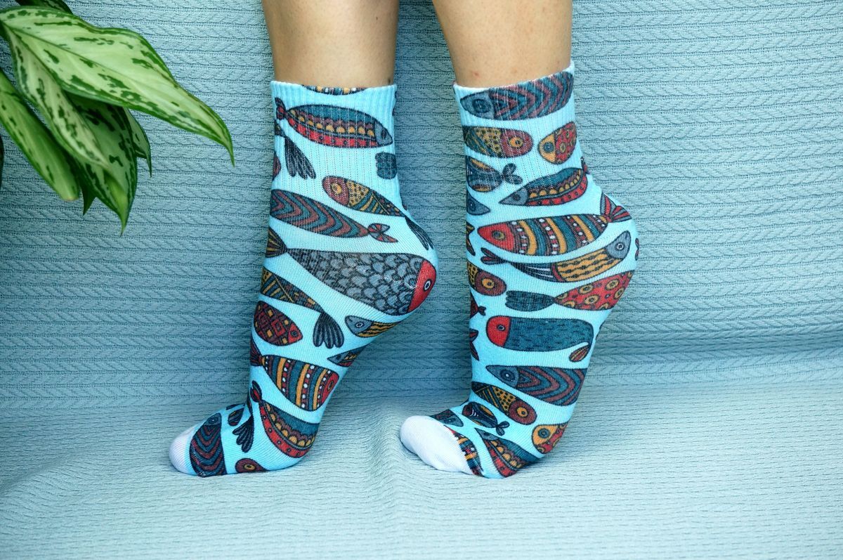 007 Хлопковый носок Рыба моей мечты. Голубая