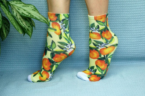 Производим новый продукт на Российском рынке: хлопковые носки с принтом Коттон Принт. Носки вяжутся из гигроскопичной хлопковой пряжи с содержанием натурального хлопка 70%. Благодаря этому носок эластичен, впитывает влагу и чрезвычайно комфортен на ноге. Кеттельный шов, это там где пальцы, выполняется на новом европейском оборудовании и никак не ощущается. Цветной принт наносится экологически чистыми чернилами на водной основе на всю тощину трикотажа, не выцветает и не линяет. Картинка получается яркой и стойкой, к тому же с изнанки нет бахромы которая присутствует на носках с жаккардовым рисунком и которая создает затруднения при надевании. 70% хлопка в составе позволит ногам чувствовать комфорт с утра и до вечера. Комфортная резинка из мягкого эластана не давит и не съезжает. Нашу продукцию стираем вместе с другой одеждой как однотонный хлопковые вещи, при температуре до 90 градусов. Хотите такой же принт на шерсти? Звоните! Этот же принт на шерстяном носке