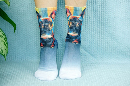 Производим новый продукт на Российском рынке: хлопковые носки с принтом Коттон Принт. Носки вяжутся из гигроскопичной хлопковой пряжи с содержанием натурального хлопка 70%. Благодаря этому носок эластичен, впитывает влагу и чрезвычайно комфортен на ноге. Кеттельный шов, это там где пальцы, выполняется на новом европейском оборудовании и никак не ощущается. Цветной принт наносится экологически чистыми чернилами на водной основе на всю тощину трикотажа, не выцветает и не линяет. Картинка получается яркой и стойкой, к тому же с изнанки нет бахромы которая присутствует на носках с жаккардовым рисунком и которая создает затруднения при надевании. 70% хлопка в составе позволит ногам чувствовать комфорт с утра и до вечера. Комфортная резинка из мягкого эластана не давит и не съезжает. Нашу продукцию стираем вместе с другой одеждой как однотонный хлопковые вещи, при температуре до 90 градусов.Хотите такой же принт на шерсти? Звоните!