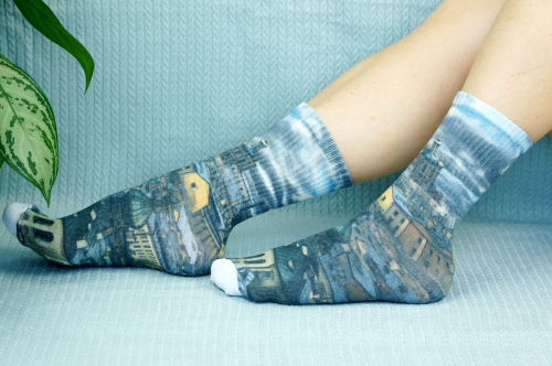 Производим новый продукт на Российском рынке: хлопковые носки с принтом Коттон Принт. Носки вяжутся из гигроскопичной хлопковой пряжи с содержанием натурального хлопка 70%. Благодаря этому носок эластичен, впитывает влагу и чрезвычайно комфортен на ноге. Кеттельный шов, это там где пальцы, выполняется на новом европейском оборудовании и никак не ощущается. Цветной принт наносится экологически чистыми чернилами на водной основе на всю тощину трикотажа, не выцветает и не линяет. Картинка получается яркой и стойкой, к тому же с изнанки нет бахромы которая присутствует на носках с жаккардовым рисунком и которая создает затруднения при надевании. 70% хлопка в составе позволит ногам чувствовать комфорт с утра и до вечера. Комфортная резинка из мягкого эластана не давит и не съезжает. Нашу продукцию стираем вместе с другой одеждой как однотонный хлопковые вещи, при температуре до 90 градусов. Хотите такой же принт на шерсти? Звоните!