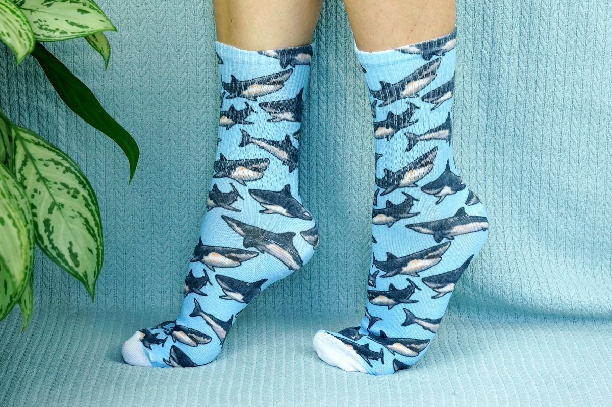 Производим новый продукт на Российском рынке: хлопковые носки с принтом Коттон Принт. Носки вяжутся из гигроскопичной хлопковой пряжи с содержанием натурального хлопка 70%. Благодаря этому носок эластичен, впитывает влагу и чрезвычайно комфортен на ноге. Кеттельный шов, это там где пальцы, выполняется на новом европейском оборудовании и никак не ощущается. Цветной принт наносится экологически чистыми чернилами на водной основе на всю тощину трикотажа, не выцветает и не линяет. Картинка получается яркой и стойкой, к тому же с изнанки нет бахромы которая присутствует на носках с жаккардовым рисунком и которая создает затруднения при надевании. 70% хлопка в составе позволит ногам чувствовать комфорт с утра и до вечера. Комфортная резинка из мягкого эластана не давит и не съезжает. Нашу продукцию стираем вместе с другой одеждой как однотонный хлопковые вещи, при температуре до 90 градусов. Хотите такой же принт на шерсти? Звоните! Этот же принт на шерстяном носке