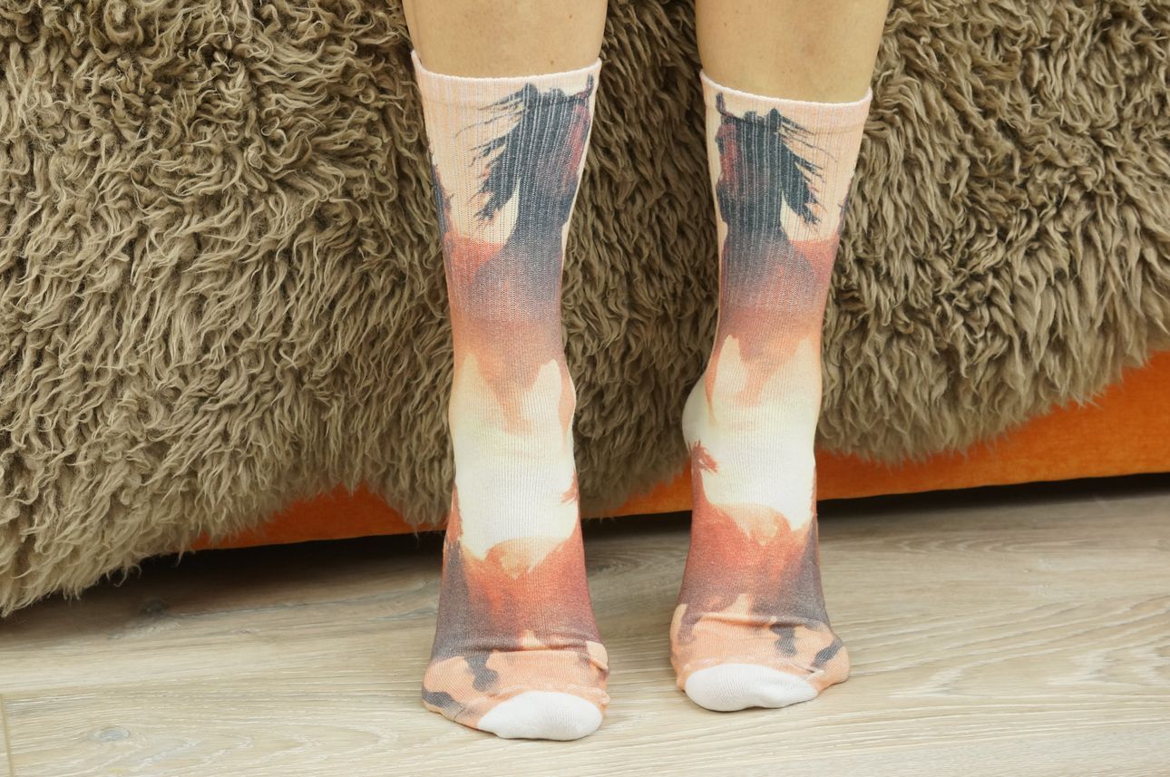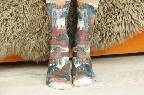 Производим новый продукт на Российском рынке: хлопковые носки с принтом Коттон Принт. Носки вяжутся из гигроскопичной хлопковой пряжи с содержанием натурального хлопка 70%. Благодаря этому носок эластичен, впитывает влагу и чрезвычайно комфортен на ноге. Кеттельный шов, это там где пальцы, выполняется на новом европейском оборудовании и никак не ощущается. Цветной принт наносится экологически чистыми чернилами на водной основе на всю тощину трикотажа, не выцветает и не линяет. Картинка получается яркой и стойкой, к тому же с изнанки нет бахромы которая присутствует на носках с жаккардовым рисунком и которая создает затруднения при надевании. 70% хлопка в составе позволит ногам чувствовать комфорт с утра и до вечера. Комфортная резинка из мягкого эластана не давит и не съезжает. Нашу продукцию стираем вместе с другой одеждой как однотонный хлопковые вещи, при температуре до 90 градусов. Хотите такой же принт на шерсти? Звоните!