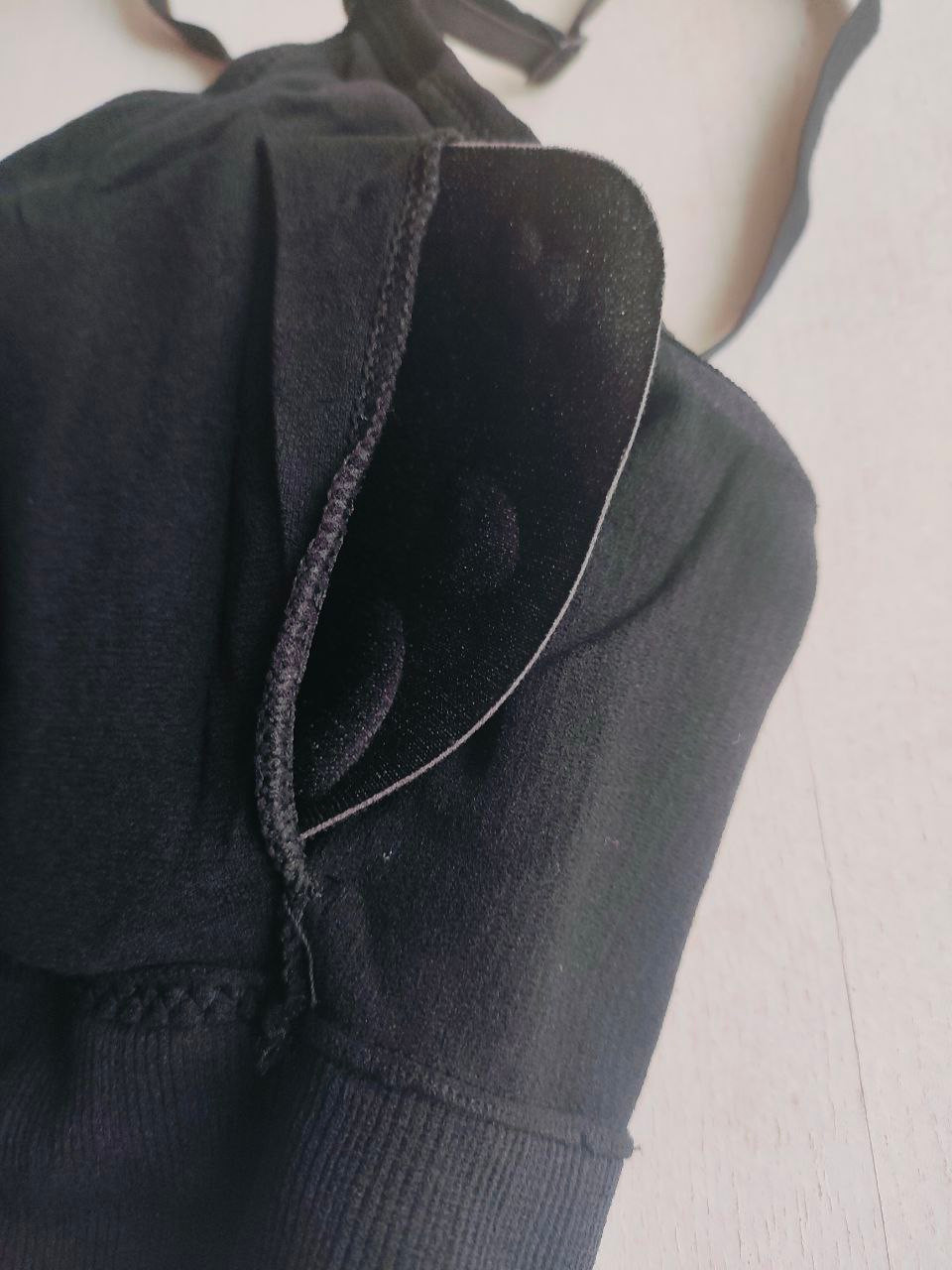 Бюстгальтер-топ женский на тонких эластичных бретелях. Топ без металлических застёжек и без косточек. Имеется тонкая съёмная вставка из поролона с небольшим пуш-апом. Широкая эластичная резинка под грудью. Топочень комфортный, не стесняет движений, бретельки не спадают.