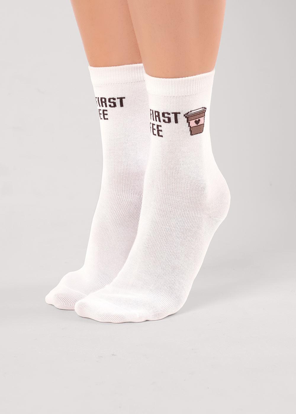 женские носки с надписью и рисунком стаканчик с кофе