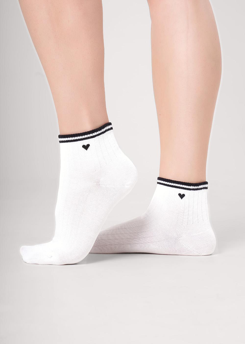 Женские носки укороченные с полосками на паголенке и сердечком.