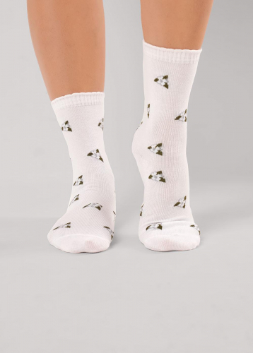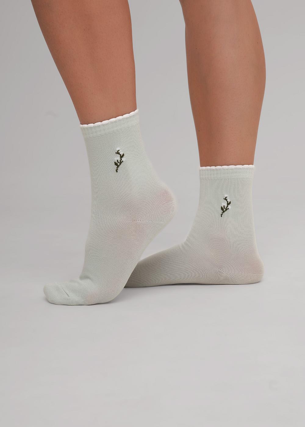 Женские носки однотонные с рисунком цветок.