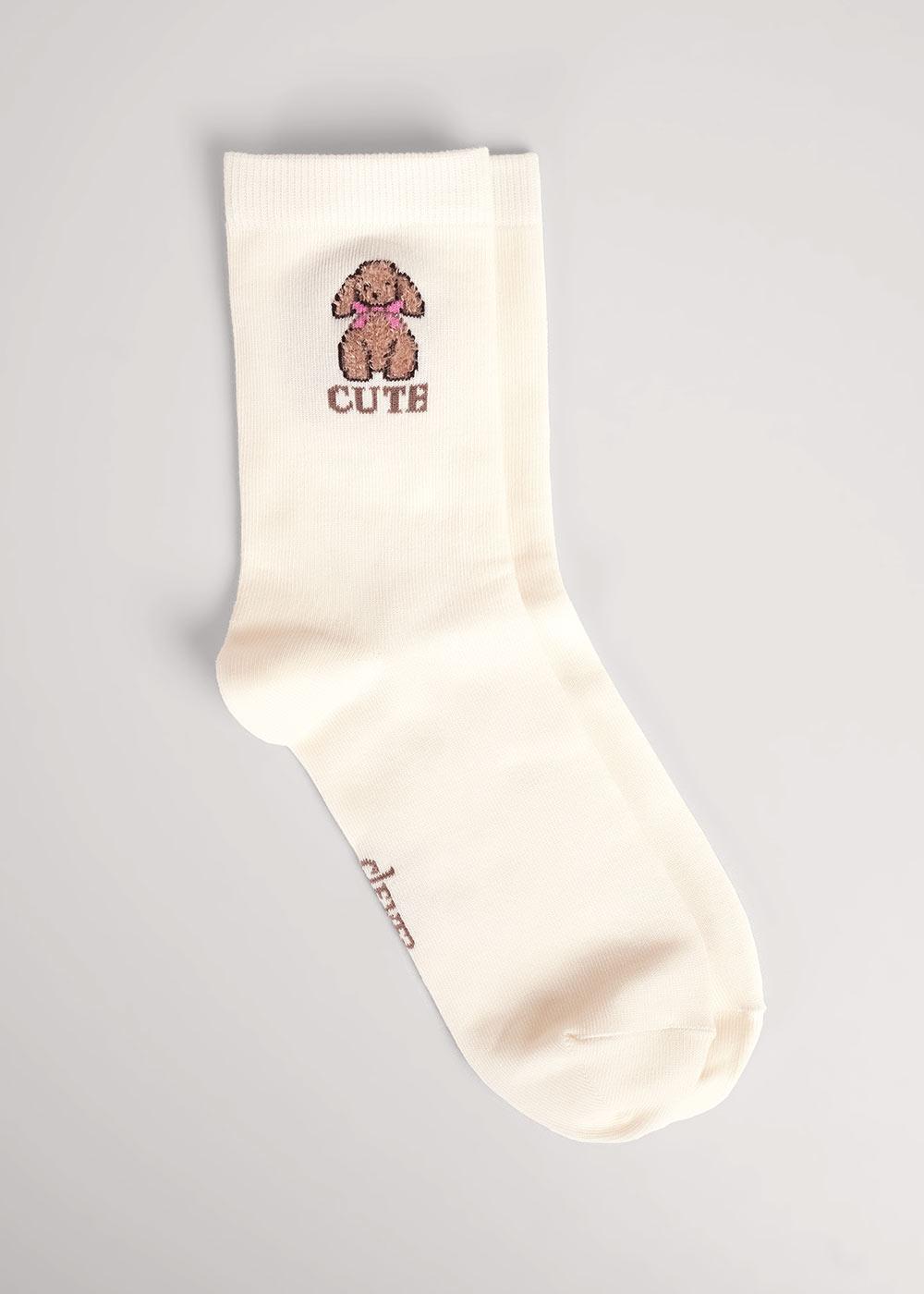 Женские носки однотонные с вышивкой собака пуделёк пряжей травка .
