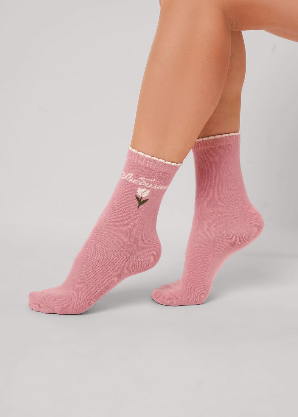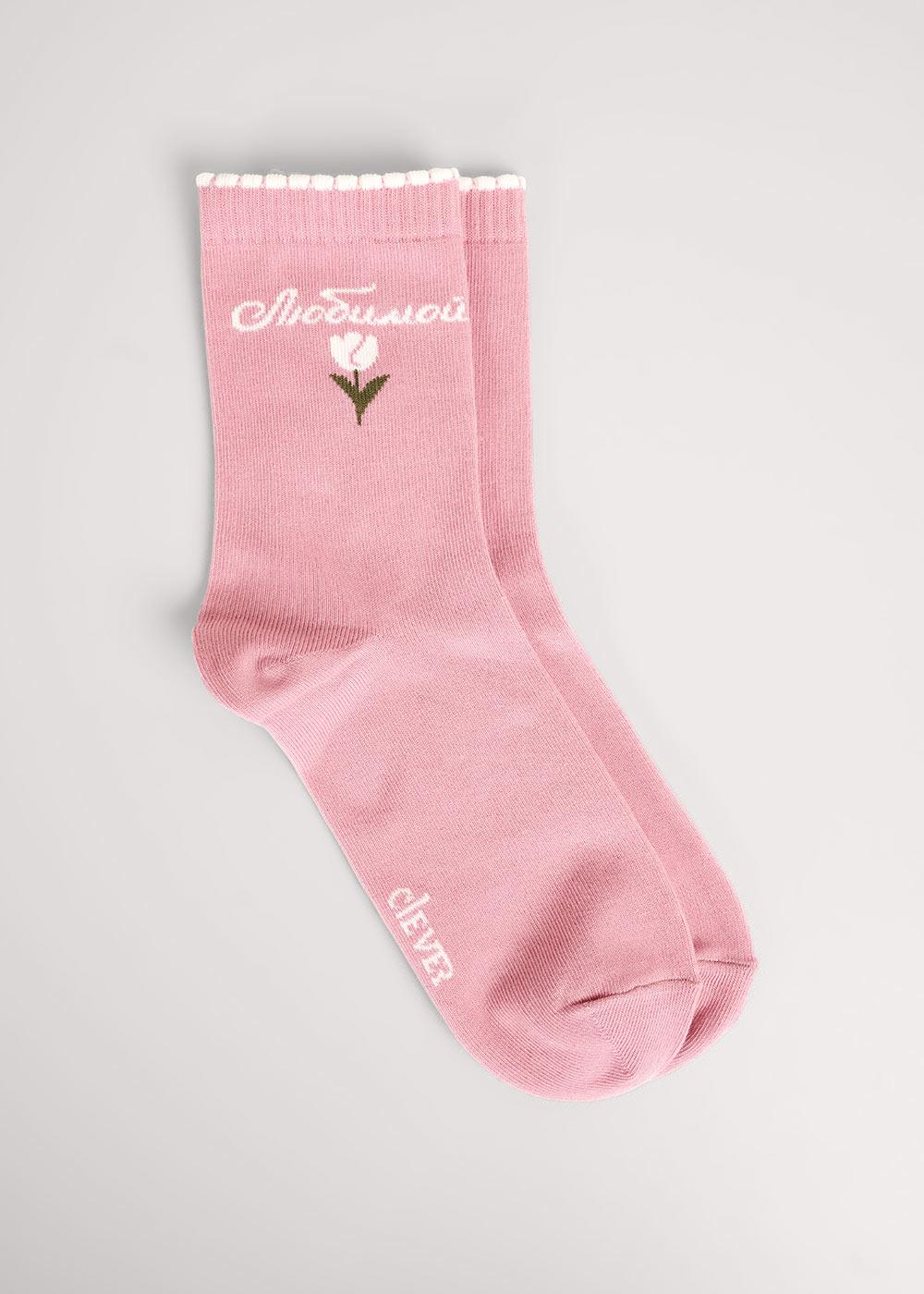 Женские носки однотонные с рисунком цветок тюльпан и надписью "Любимая".