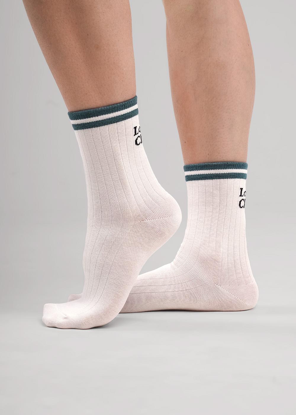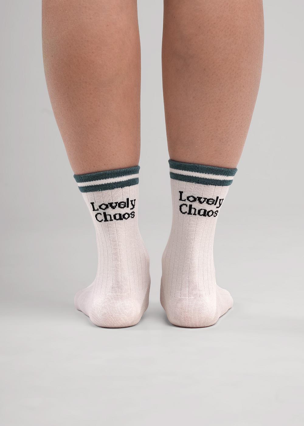 Носки женские однотонные с контрастными полосами на паголенке и надписью "Lovely Chaos"