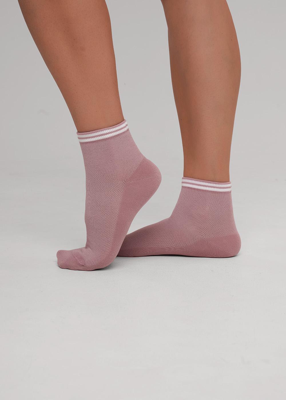 укороченный однотонный женский носок с кеттельным (плоским) швом , облегченное плетение "сетка"