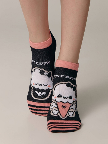 Укороченные спортивные женские носки из хлопка, с махровой стопой, с рисунками.