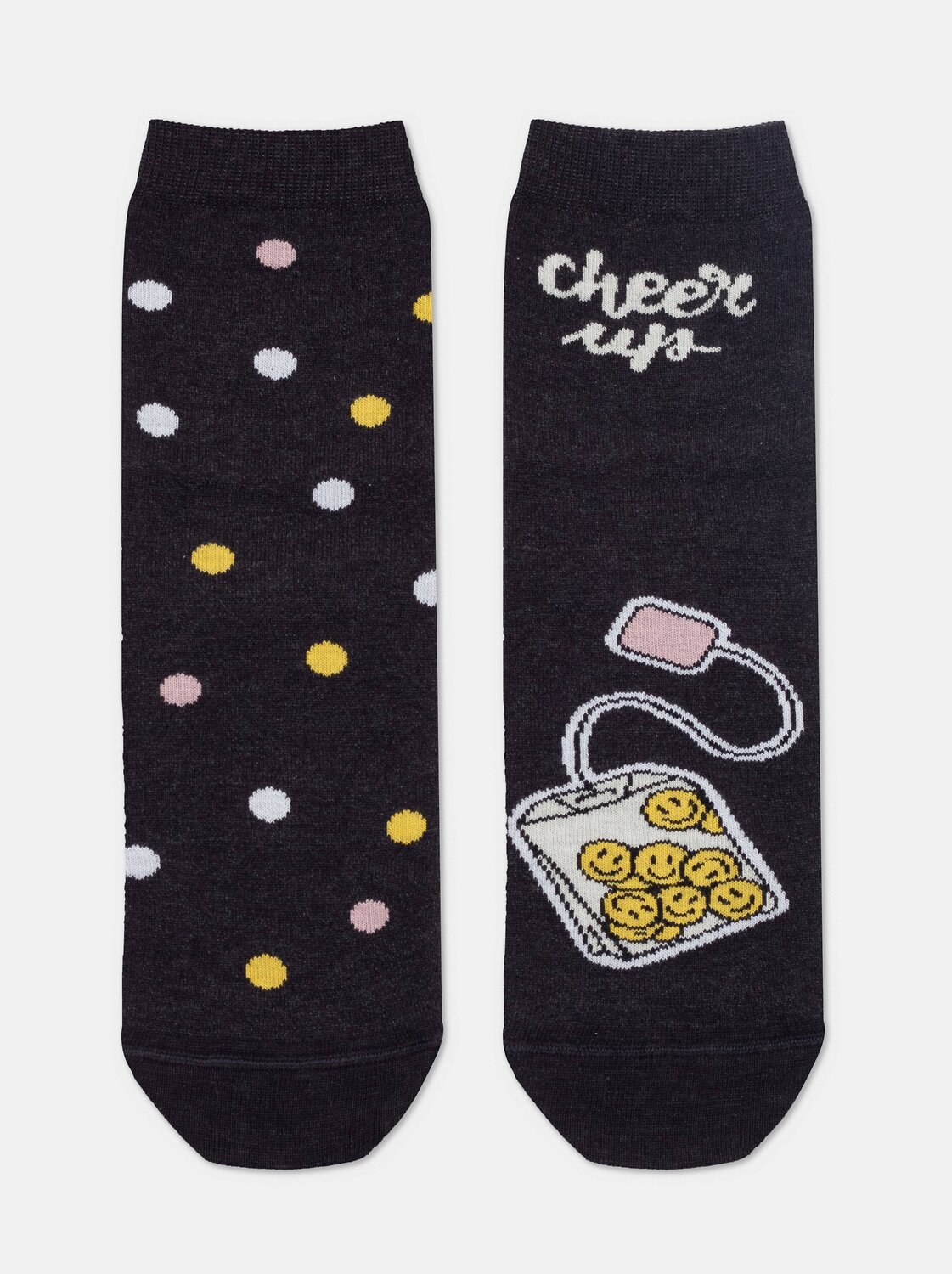 Эти хлопковые носки станут изюминкой вашего образа. Подходят для любого настроения, случая и гардероба. Оригинальные ассиметричные рисунки и креативные надписи подчеркнут вашу яркую индивидуальность.