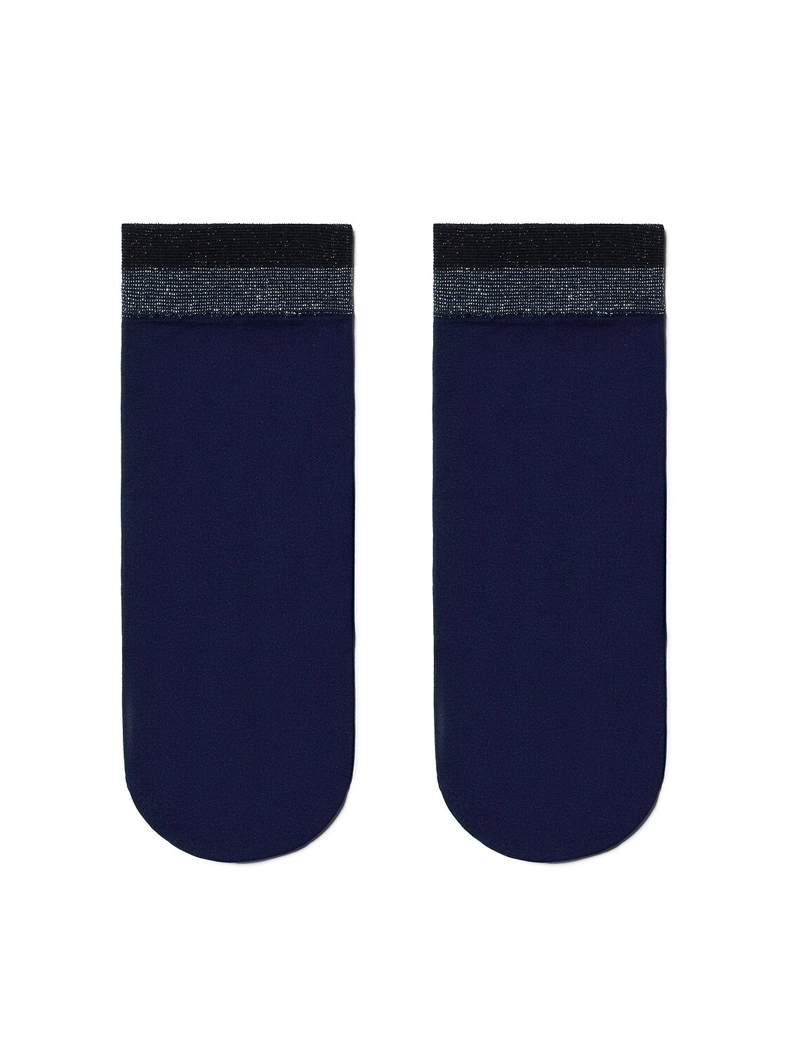 Однотонные фантазийные носки с сияющим бортиком из двухцветного люрекса созданы для девушек, которые любят выглядеть оригинально и с удовольствием подчеркивают свою индивидуальность.