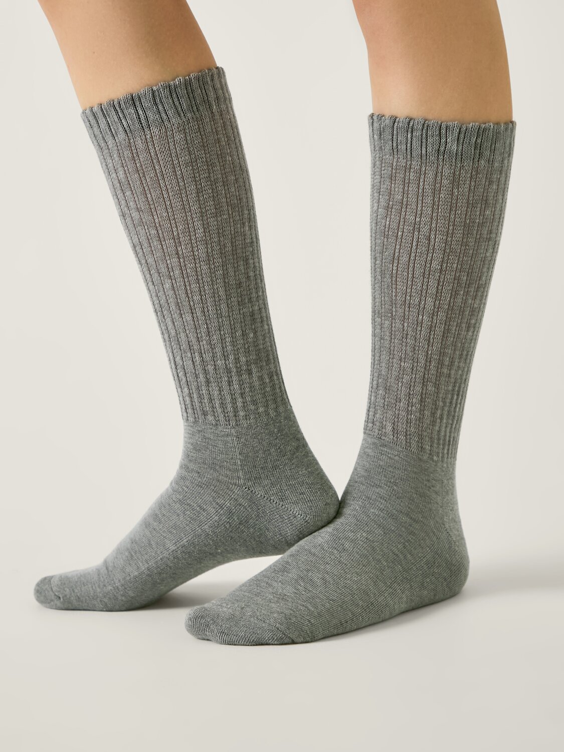Комфортные теплые женские носки из хлопка с махровой стопой, с высоким паголенком-резинкой.