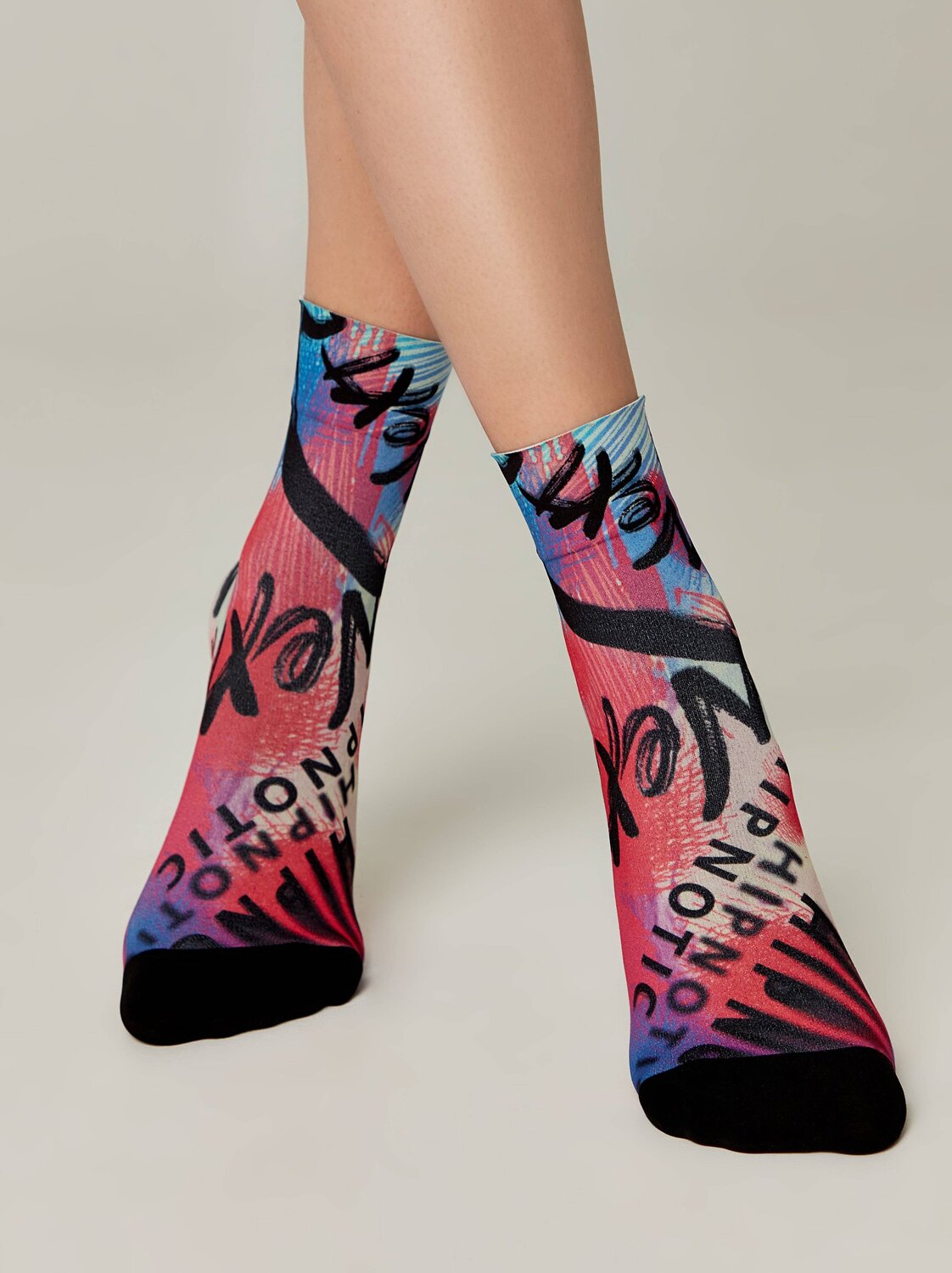 Плотные носки с особенно устойчивым рисунком, нанесенным с помощью термотрансферной печати, станут стильным и индивидуальным акцентом в повседневных образах.