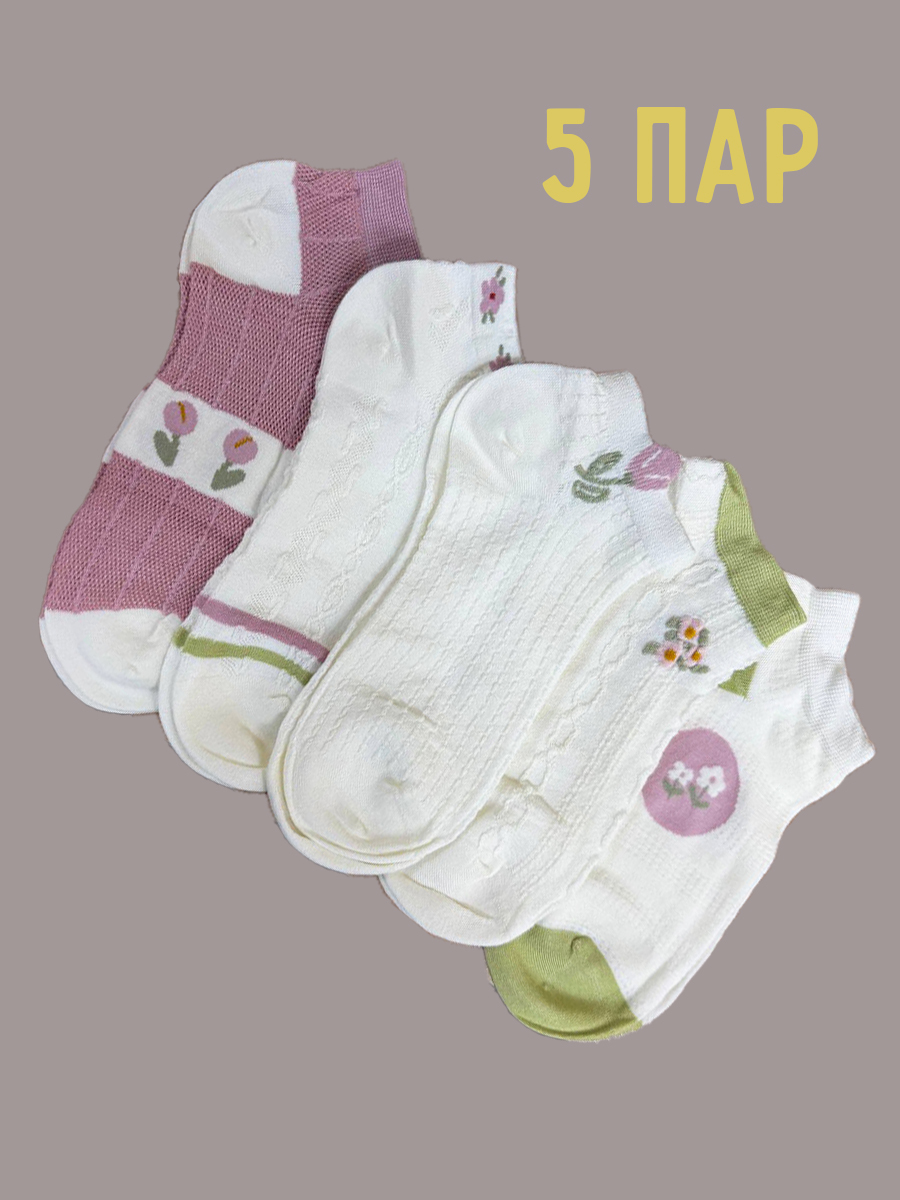 Короткие носки р.35-40 "Flowers" Комплект - 5 пар