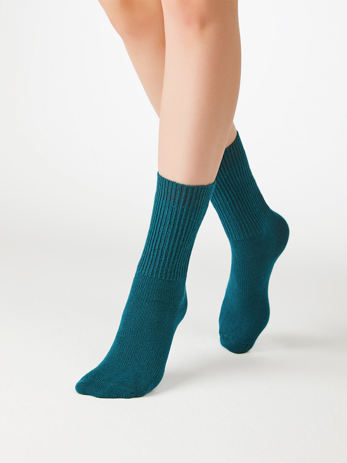 Мягкие тёплые носки - идеальный аксессуар с трендовой палитрой разнообразных оттенков, который отлично подойдет и к уютному домашнему образу, и к нарядам "на выход", а также станет приятным и полезным подарком на любые праздники.