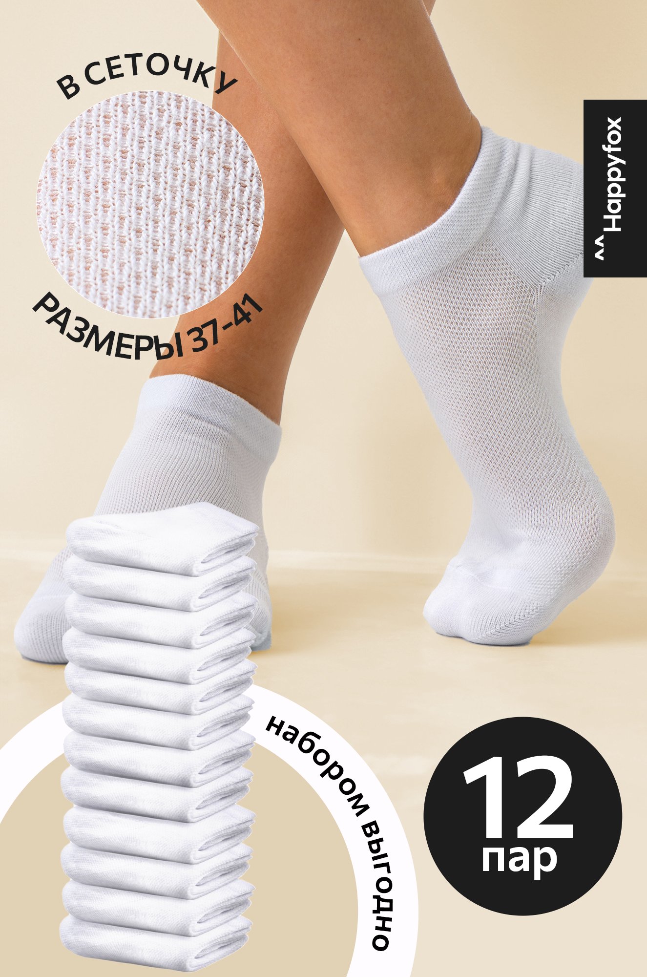 Маленькая, но важная деталь! Набор женских носков с сеткой 12 пар выполнен из нежного хлопка. Отлично тянутся, плотно сидят на ноге и не давят – эти короткие носки идеальны для любой ситуации! Однотонные носки для женщин представлены в базовом белом цвете.